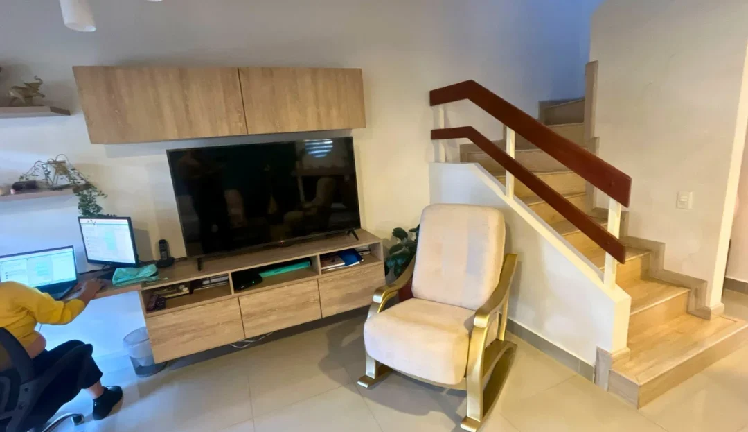 Esta propiedad, ubicada en una zona estratégica con excelente acceso a transporte público, instituciones educativas y servicios, ofrece una conectividad inmejorable. En su primer nivel dispone de una amplia sala-comedor, estudio, cocina integral, patio y baño social; mientras que en el segundo nivel se encuentran tres habitaciones, una de ellas con baño privado. El conjunto residencial se caracteriza por su ambiente seguro y tranquilo, así como por su parque natural, perfecto para el disfrute familiar, y su cercanía a comercios y otros servicios esenciales. tiene cerca un D1, McDonald y Centro comerial Jumbo y Centro Chía. tienes remodelados baños y Closets.