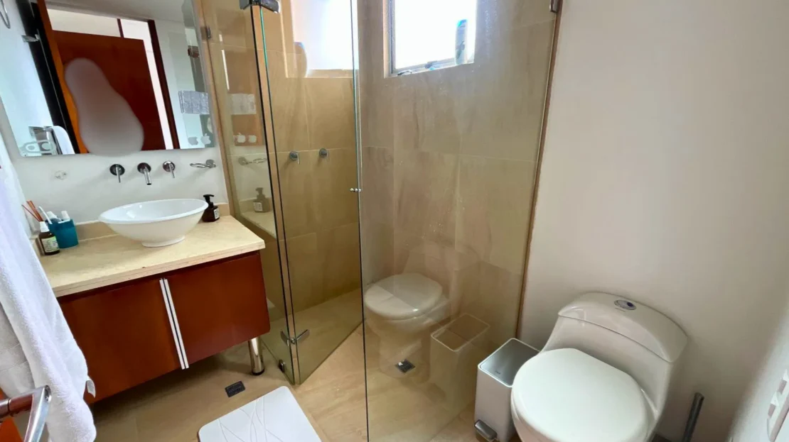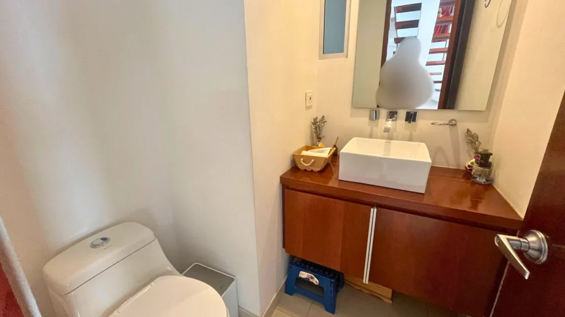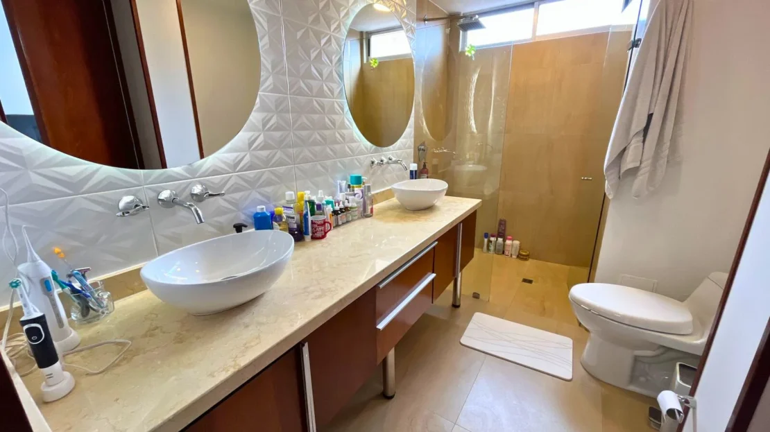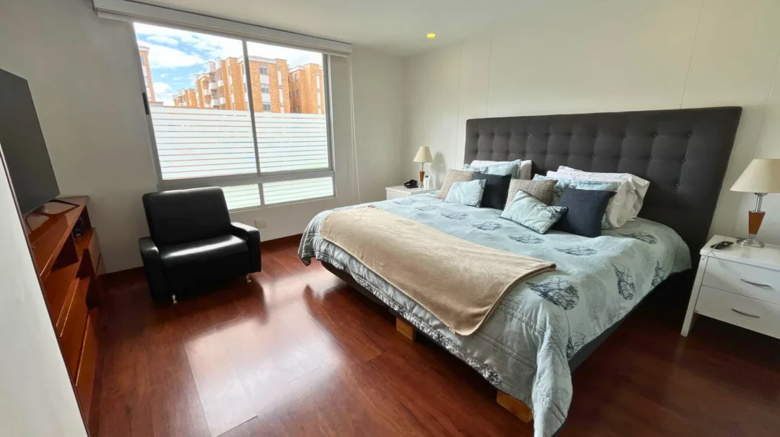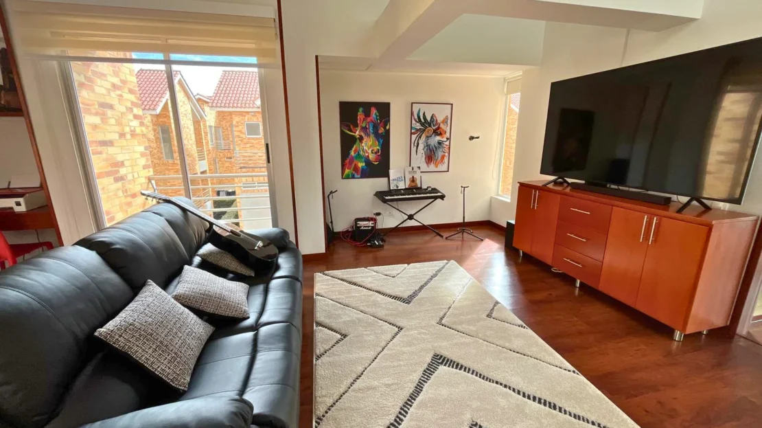 En el tercer nivel se desarrolla una completa zona familiar que incluye una tercera habitación con baño privado, sala de televisión, área de estudio, terraza y balcón, creando un espacio versátil ideal como zona de entretenimiento, trabajo o descanso.