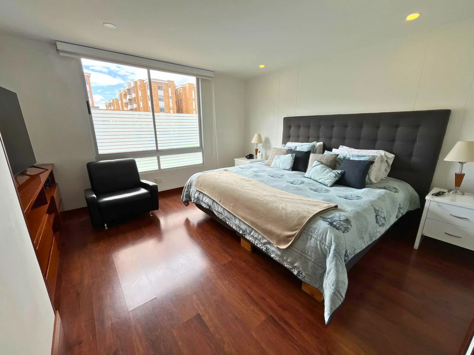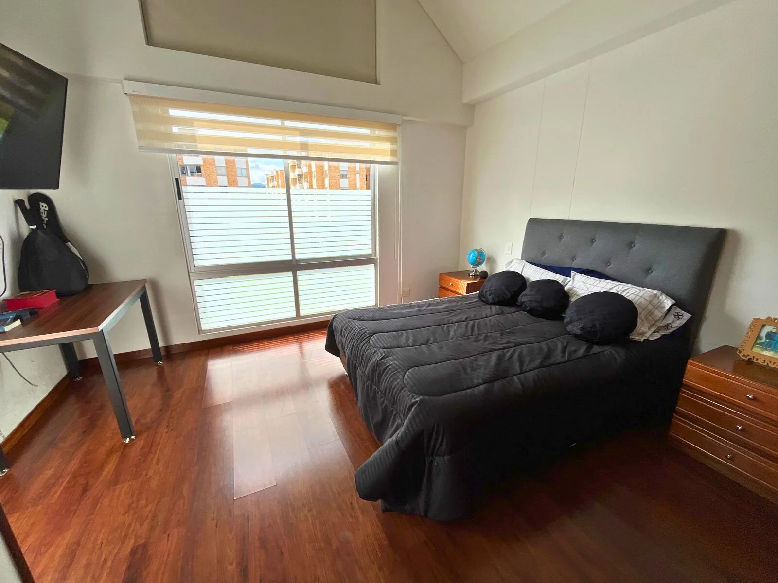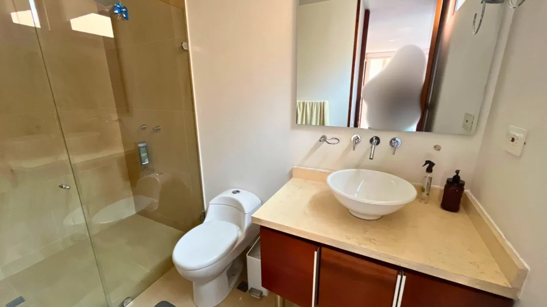 En el tercer nivel se desarrolla una completa zona familiar que incluye una tercera habitación con baño privado, sala de televisión, área de estudio, terraza y balcón, creando un espacio versátil ideal como zona de entretenimiento, trabajo o descanso.